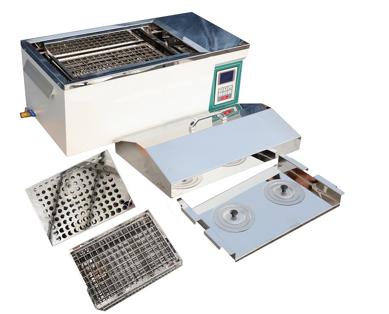 Telaio metallico con esterno verniciato epossidico con trattamento antiossidante. Serbatoio e coperchio in acciaio inox 304. Camera isolante in poliuretano. Include coperchio rimovibile con fori e anelli riduttori, rack metallico per provette e piattaforma con molle elastiche in grado di contenere contenitori di diverse dimensioni. Regolazione digitale della temperatura tra ambiente 5 ºC e 100 ºC (risoluzione: 0,1ºC). Ampiezza di oscillazione reciproca: 16 mm. Range di frequenza reciproca: 20-180 rpm (± 1 rpm). Meccanismo silenzioso. Può funzionare in modo continuo oppure può essere programmato con un timer digitale per lavorare in periodi di tempo specifici, da 1 min. a 9999 min, con segnale acustico. Display digitale che visualizza la temperatura, la velocità e il tempo. Allarme surriscaldamento. Dispone di tubo di scarico. Usi solo acqua purificata. 220 V ±10%; 50/60 Hz. Garanzia di 2 anni
