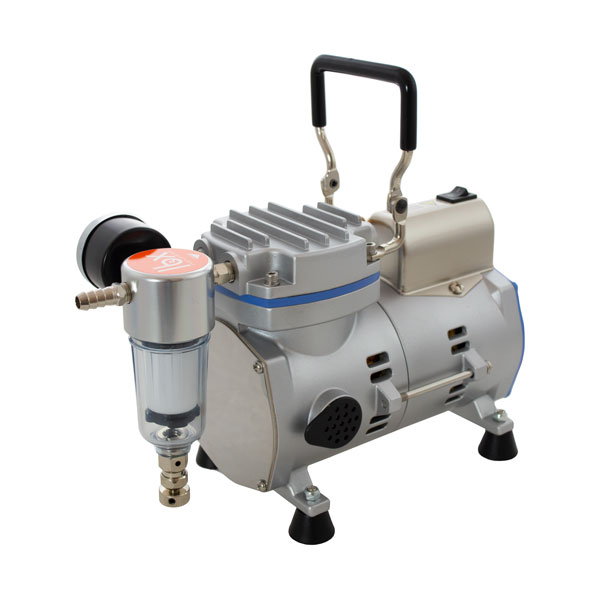 Per sistemi di filtrazione, beute da vuoto, essiccatori e altri usi di laboratorio. Pompa compatta e leggera, con motore a pistone e completamente senza olio, cosa che la rende una pompa pulita e che non necessita di manutenzione. Vacuometro incluso. Funzionamento silenzioso (50 dB). Protezione da perdite e surriscaldamento. Giri del motore: 1450 rpm. 220 V/50 Hz. Garanzia di 2 anni. In generale, si raccomanda di utilizzare le pompe per vuoto con una trappola, imprescindibile nei casi in cui si lavora con una rampa di filtrazione