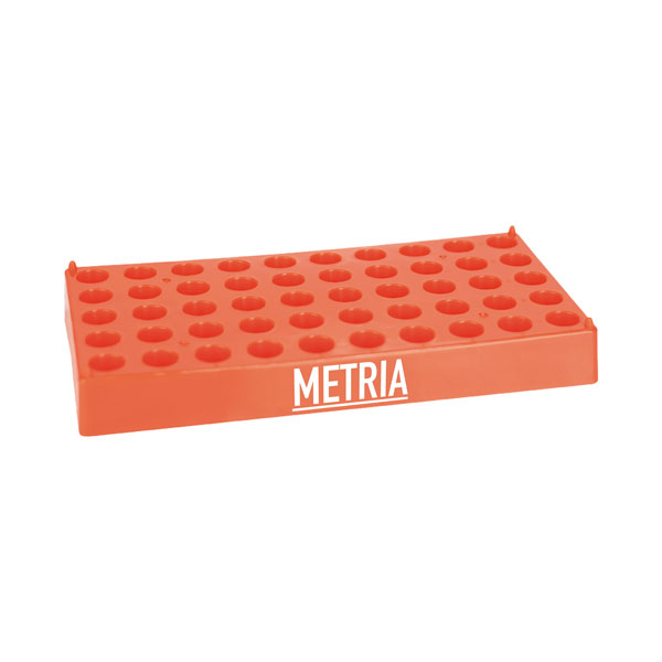 Rack per fiale per cromatografia. Capacità per 50 fiale. Disponibile in due formati per fiale da 2 ml e 4 ml