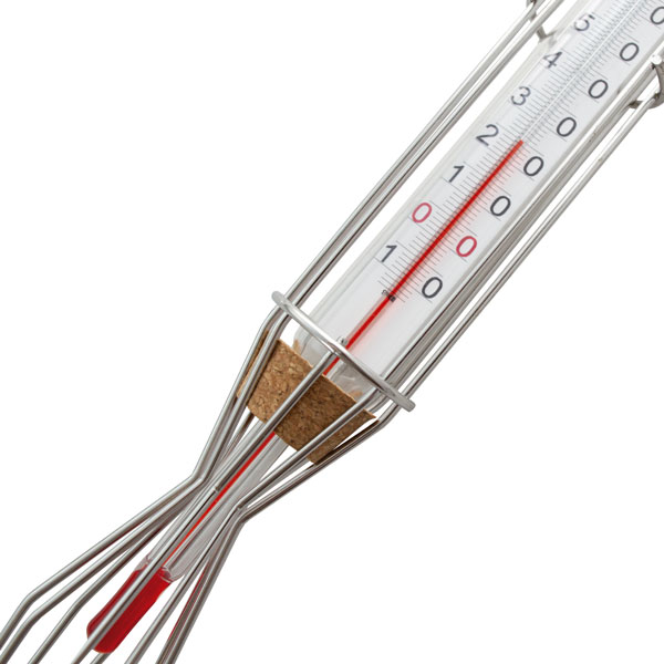 Termometro chimico ad asta con liquido rosso (senza mercurio) protetto all’interno di un astuccio per evitare rotture in caso di utilizzo in frigoriferi o stufe